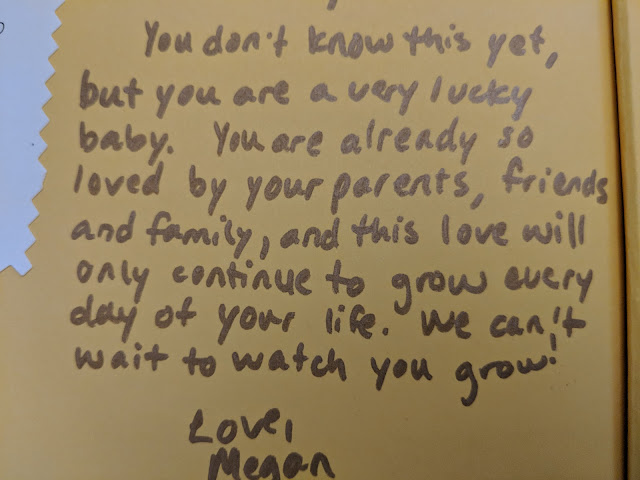Another wonderful idea is the book On the Night You Were Born with a special touch. Our friends and family gifted us this book with personalized messages written to our baby from each person. It is a true keepsake and very special!