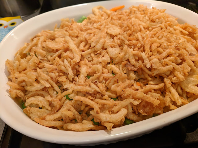 1 lg can onion rings (I used to always buy French’s which is what you see in the photos above, but last time I bought these and they were good too.)