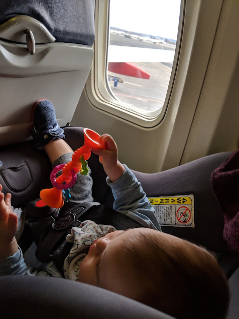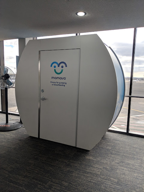 Check-in and going through the security at the airport was a breeze. I was nervous since I brought milk bottles, but I let them know about it beforehand and they didn’t even test it. I packed it in a lunchbox and used two ice packs. I took 2 frozen bottles and 2 chilled bottles of breastmilk and the frozen ones were still mostly frozen when I arrived at my destination. The airport wasn’t busy at all, which made it even easier! They had a Mamava nursing pod that was so convenient for me to nurse my 8 month old. I don’t think he would have nursed well in the terminal because he is very distractable. So, I was thankful for a quiet and clean place to sit and nurse him before the flight. The airport staff was extremely accommodating. Since I was flying alone with my toddler and baby, I asked if it would be possible for my husband to escort us to the gate. They said it is usually not possible but since the airport was quiet that day they would be able to make an exception. I am so glad we asked because it made the wait for the plane so much easier!